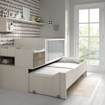 Cama infantil convertible Ros NIDO 03 sistema Montessori. Madera lacada color blanco.