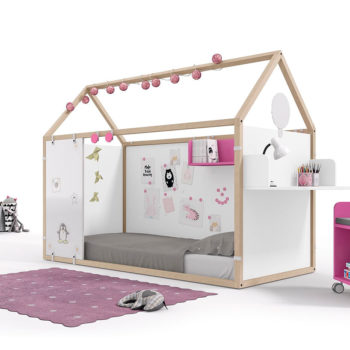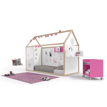 A los peques también les encanta la intimidad, poder esconderse para jugar, leer o simplemente pasar un rato, por eso el programa de casitas NIDO permite colocar cortinas decorativas para crear un espacio único y acogedor. Dentro de su pequeño espacio tendrán disponibles sus estanterías para colocar sus libros preferidos.