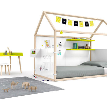 Y para las más coquetas, el cabezal con escritorio y el espejo circular permitirán transformar un lateral en un bonito tocador. Además, todos los dibujos y pósteres se podrán colgar en los frontales imantados.