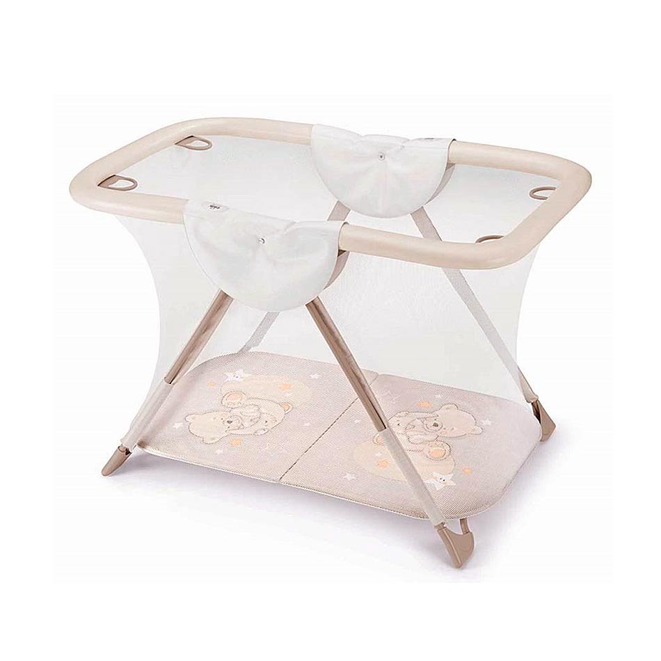 La fotografía corresponde al modelo beig con Osito, no con el modelo en Stock color Gris con Cigueña.