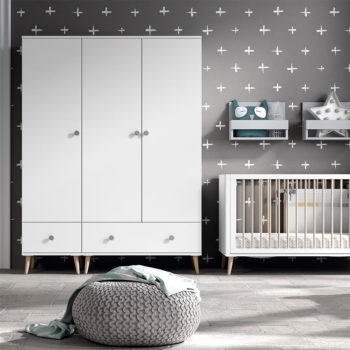 MARINA costa de un conjunto de muebles en los cuales se engloban dos tipos de armarios y una cómoda en la cual, puedes jugar con los tiradores para personalizarla, tanto en color como en forma.